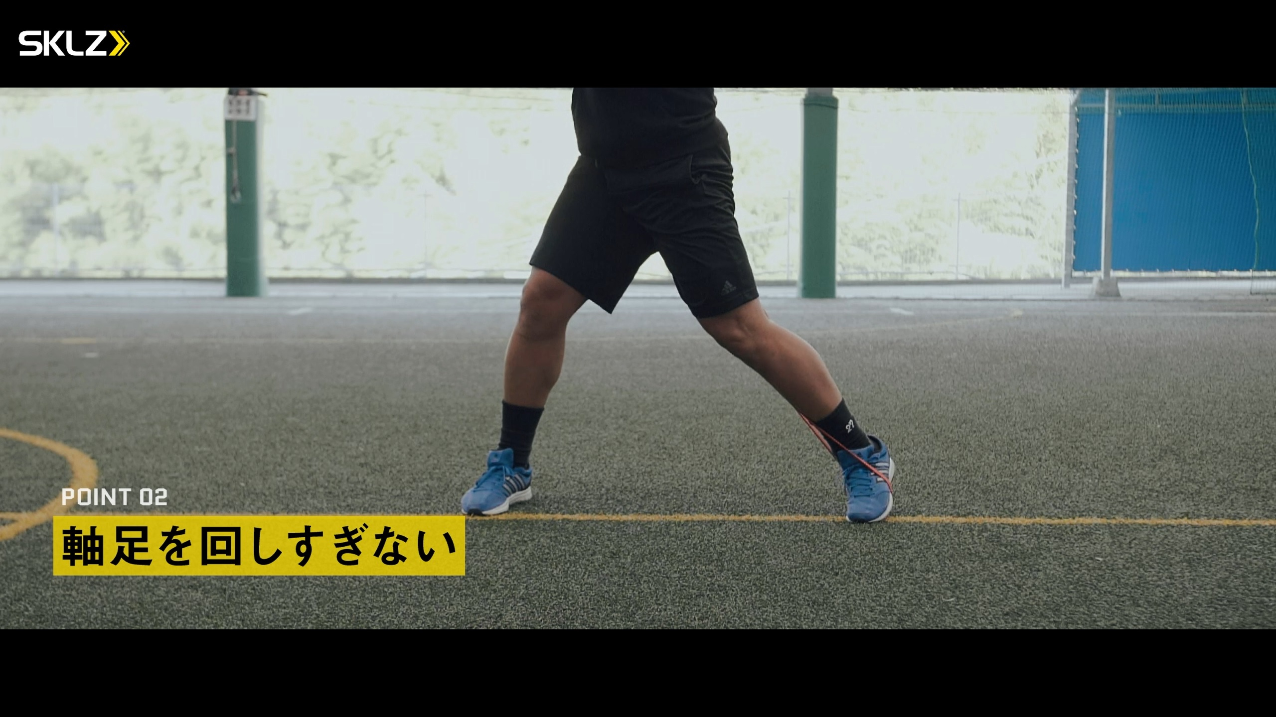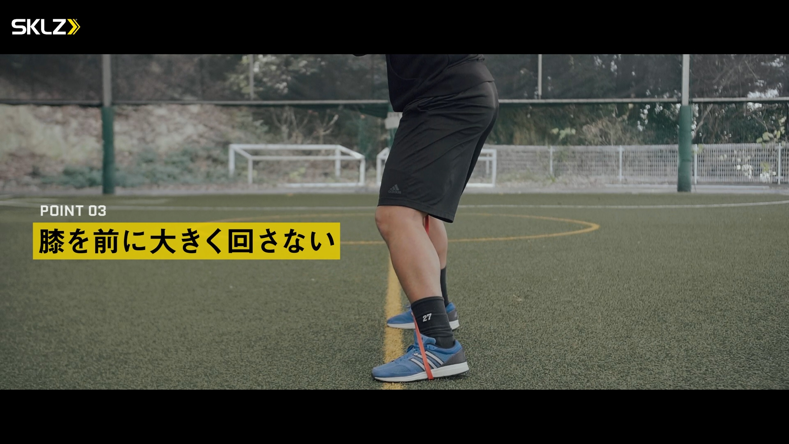 POINT.3 軸足の膝を前に出しすぎない、内側に入れない